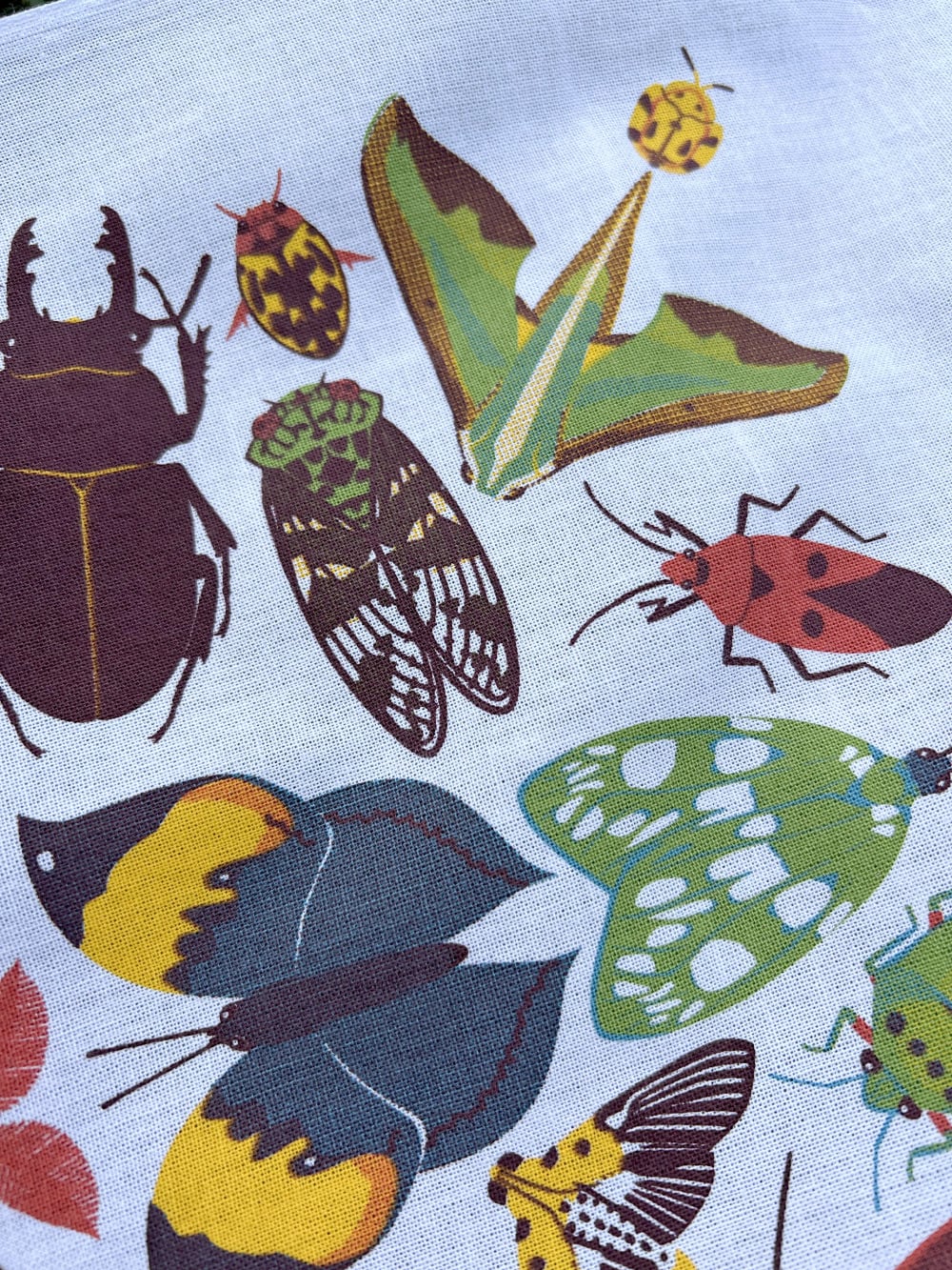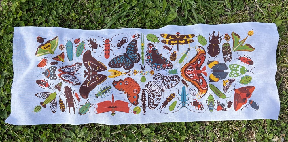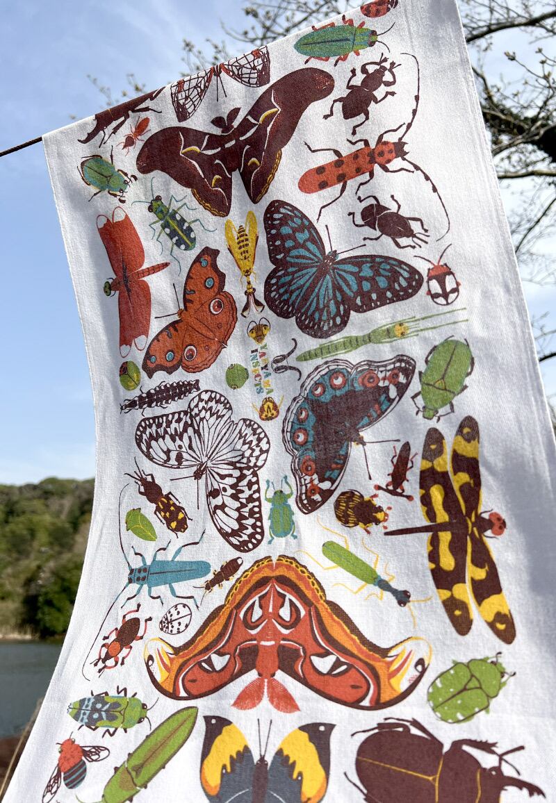 八重山に暮らす虫たちをもりもり盛り込んだてぬぐいです。