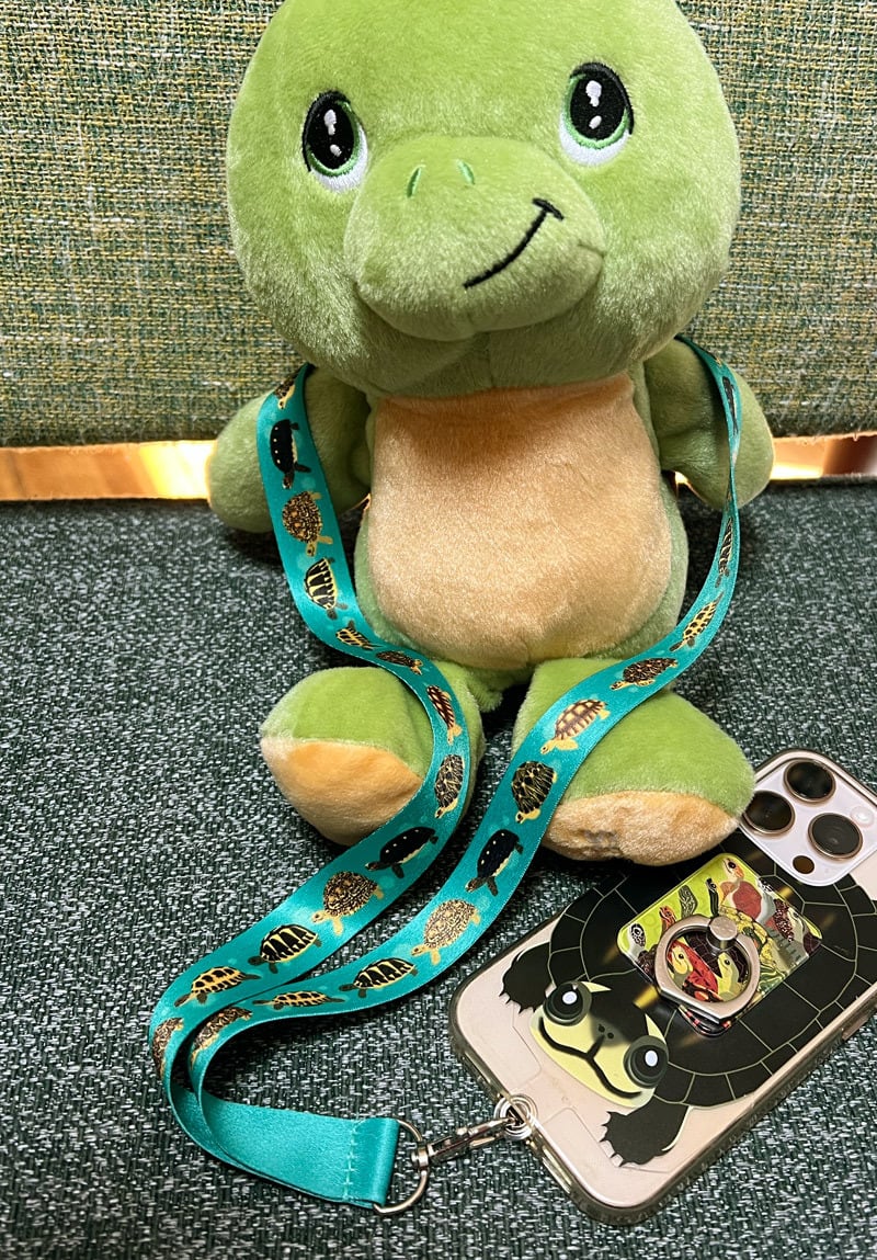 カメづくしのネックストラップです。 スマホ、デジカメ、IDケースなどを首からかけるのにお使いください。 長さは約90cmです。 ▪️リクガメ インドホシガメ、ヨツユビリクガメ、ヘルマンリクガメ、ヒョウモンガメ、アカアシガメ、ホウシャガメ、ケヅメリクガメが登場 ▪️日本の亀 ニホンイシガメ、アカウミガメ、ヤエヤマセマルハコガメ、リュウキュウヤマガメ、ミナミイシガメ、クサガメ、アオウミガメが登場