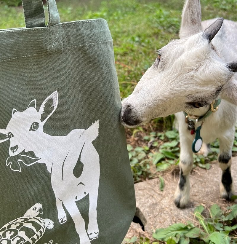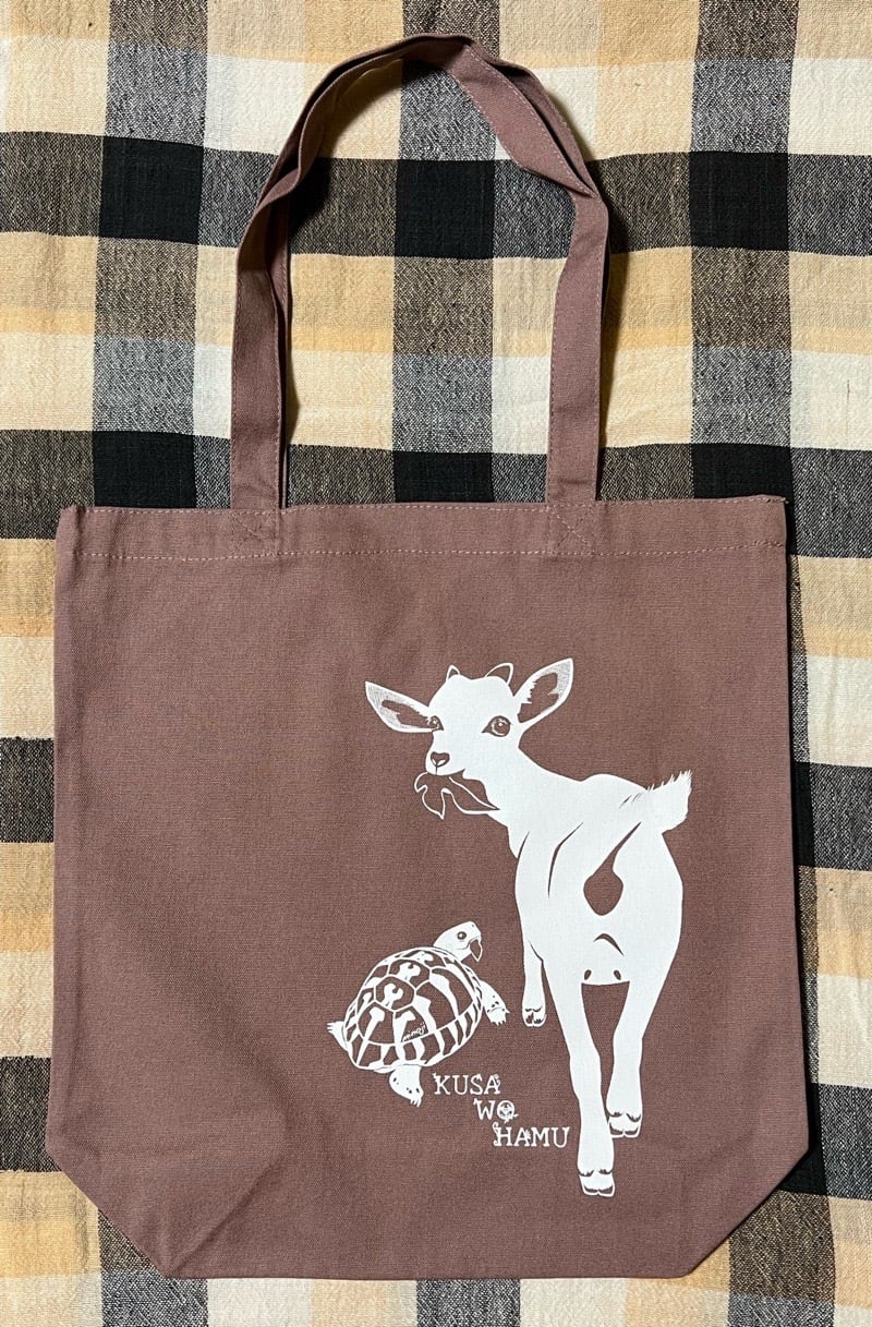 はっぱ大好きシバヤギとヘルマンリクガメのバッグです。 シバヤギと暮らし始め、あまりに愛らしいのでヤギアイテムも作ってしまいました。 ▪️サイズ タテ約370mm× ヨコ約330mm× マチ約120mm ▪️素材 綿100% ▪️厚み 8.3oz