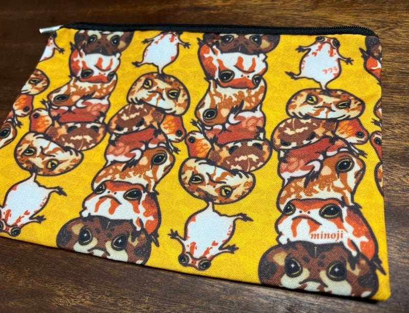 アメフクラガエルづくしのフラットポーチです。 たっぷり入る大きめのポーチなので、旅行やお出かけの際にぜひご活用ください。 両面とも同じデザインです。 ▪️サイズ 22cm×16cm ▪️素材 ポリエステル
