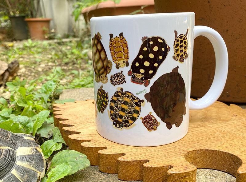 リクガメだらけのマグカップです。たっぷり入る大きめサイズ。