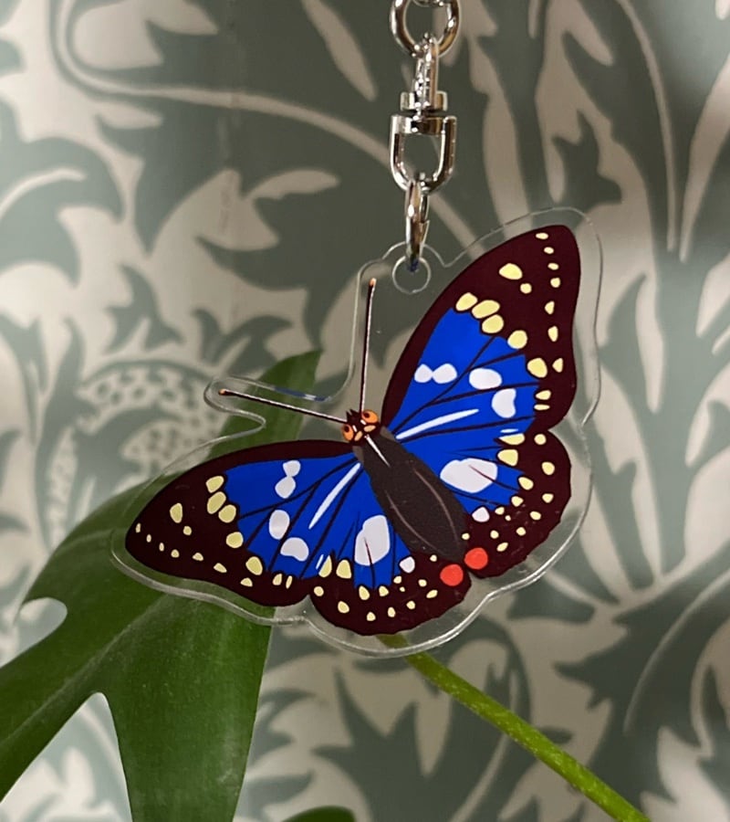 日本の蝶たちがモチーフのキーホルダーです。 オオムラサキ、オオゴマダラ、スミナガシ、ウスバキチョウ、キアゲハ、ナガサキアゲハ、アオタテハモドキ ▪️大きさ 50mm×50mmくらい ▪️素材 アクリル